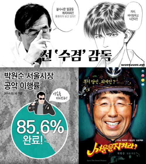 박원순 포스터, 컷부 웹툰으로도 패러디됐네", "