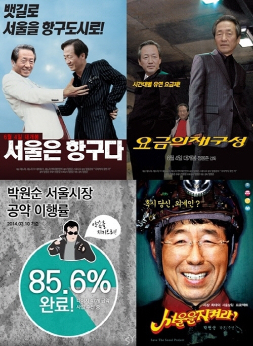 포스터 속의 박원순은 배우 김보성의 유행어를 이용한 '약속을 지키으리'로 공약 실현을 강조했다. 또 영화 포스터 속의 주인공으로 분해 환한 미소를 짓고 있어 눈길을 끈다.