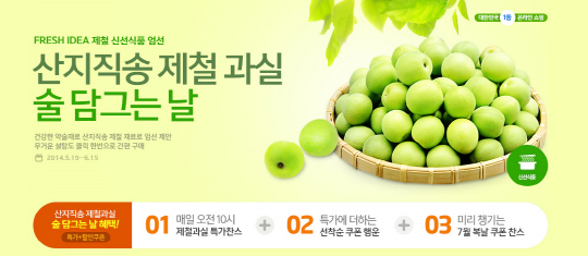 신선한 매실 및 담금주용 과실을 산지에서 직접 배송하며, 구매 고객에게 할인쿠폰을 지급하는 등 다양한 혜택을 제공한다.