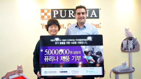 세계적인 반려동물 식품 전문회사 네슬레 퓨리나(www.purina.co.kr)가 반려견, 반려묘를 위한 퓨리나 사료를 동물보호시민단체 'KARA'에 기부했다.