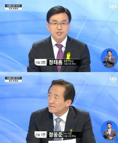 이후에도 정몽준 후보와 정태흥 후보의 설전은 계속 이어졌다. 정태흥 후보는 "정몽준 후보가 색깔론을 말하니, 새누리당의 국가관에 대해 질문하고 싶다"며 "새누리당이 친일, 독재를 미화하는 교과서를 채택하라고 압력을 넣고 있는데 헌법 전면에 반하는 이 같은 행위에 대해 어떻게 생각하나?"라고 물었다.