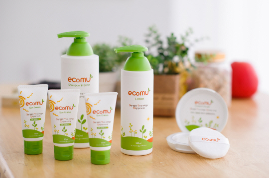 '에코뮤'는 로션, 샴퓨앤바스, 선크림, 컴팩트파우더 등 총 네 가지 종류로 출시됐으며 전국 아가방앤컴퍼니 매장에서 구입할 수 있다. 가격은 로션(180㎖) 1만8000원, 샴푸앤바스(320㎖) 2만1000원, 선크림(30㎖ X 3ea) 1만9000원, 컴팩트파우더(20g)이 1만6000원이다.
