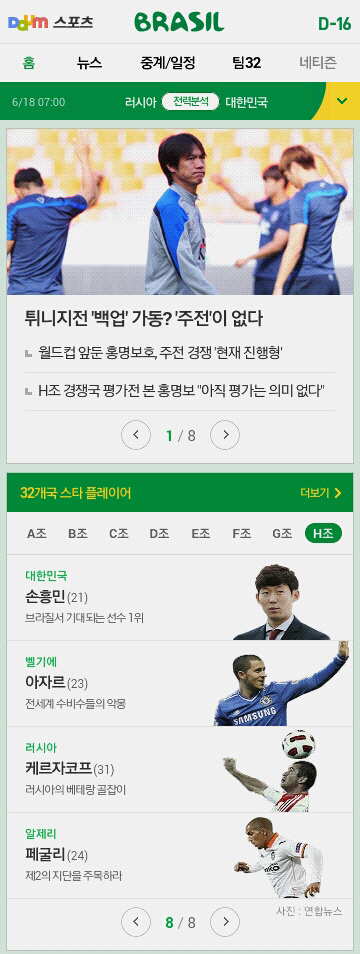브라질 월드컵 본선진출 32개국 중 대한민국 대표팀을 위한 전용 페이지도 마련되어 있다. '팀 대한민국'을 통해 예선기록을 포함한 세부 선수정보와 상세 리포트를 제공한다. 선수들이 월드컵 공식 유니폼을 착용한 사진을 대한축구협회의 공식스폰서인 다음에서만 볼 수 있는 점도 흥미롭다.
