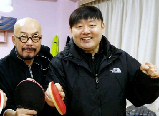 | ◇디자이너 이상봉(왼쪽)과 탁구 선수 김완(감독)이 포즈를 취하고 있다. |