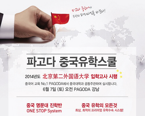 파고다어학원 중국유학스쿨은 중국 북경 제2외국어대학과 공동 주관해 6월 7일 토요일 오전 9시부터 11시까지 북경 제2외국어대학 입학 고사가 중국과 한국에서 동시에 시행한다. 한국에 거주하고 있는 학생들이 입학고사를 위해 중국까지 가야하는 번거로움을 덜어주고자 파고다어학원이 제2외국어대학과 합작해 마련했다. 입학 고사는 무료로 진행된다.
