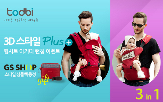 유아용품 전문 브랜드 토드비가 '3D 스타일 플러스 힙시트 아기띠'를 6월 2일 GS SHOP에서 리뉴얼 단독 런칭 이벤트를 연다.
