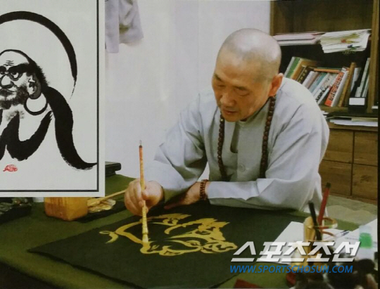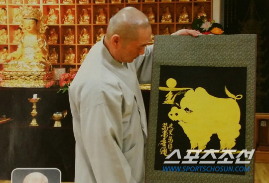 | ◇황금복돼지를 그리고 있는 만녕스님 모습 |