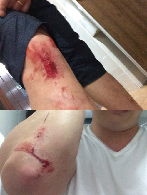 이 시민은 "경찰관이 다른 동료들을 불러 나를 범인 잡듯이 제압했고, 이 과정에서 경찰관과 승강이를 벌여 팔꿈치와 무릎 등에 상처를 입었다"며 "경찰관 4명이 아내와 아이가 보는 앞에서 수갑을 채우고 목을 조리고 바닥에 눕혀 짓눌렀다. 생명의 위협을 느꼈다"고 주장했다.