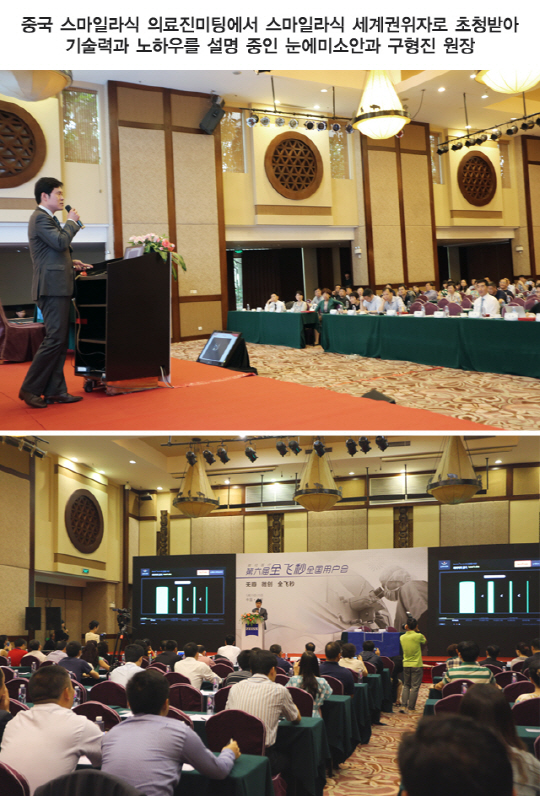 지난 24일 중국에서 스마일라식 의료진들이 모여 그들의 기술력과 성과에 대해 이야기하는 자리에 초청받아 100여명의 의료진 앞에서 구원장은 스마일라식 수술 기술력과 노하우에 대해 설명하기도 했다.