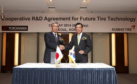 금호타이어(대표 김창규)는 지난 31일(토) 세계 8위의 타이어 기업인 일본 요코하마와 미래형 타이어 공동연구개발계약(Cooperative R&D Agreement)을 체결했다.