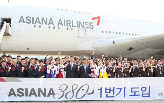 금호아시아나그룹 박삼구 회장, 아시아나항공 김수천 사장, 주한 프랑스 제롬 파스키에(Jerome Pasquier) 대사 등이 참석한 가운데 아시아나 A380 1호기의 도입을 환영하는 꽃다발 증정행사가 진행, '아시아나380 스페셜 에디션'으로 명명된 아시아나 A380의 내부시설 및 인테리어를 공개하는 시간을 가졌다.