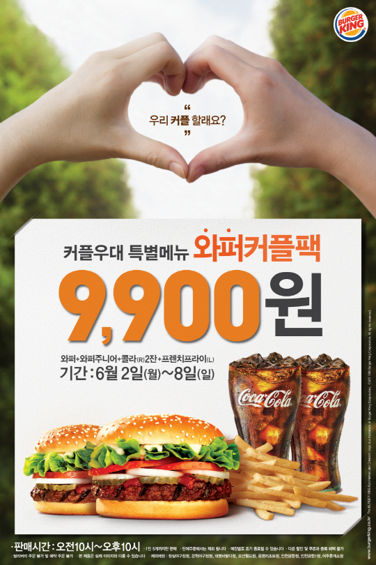 '와퍼커플팩'은 8일까지 7일 동안 버거킹 전국 매장에서 판매된다.