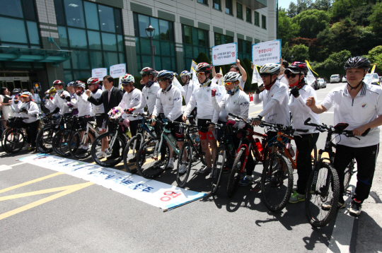 알톤스포츠는 지난달 23일 '2014 소아암 환우 돕기 자전거 국토종주'로 부산에서 출발해 약 61㎞, 7박8일간의 대장정을 마치고 지난달 29일 일산 국립암센터에 성공리에 행사를 마쳤다. 박재갑 국립암센터 초대원장과 글로벌 알톤라이더 등 십여명의 참가자들은 이번 국토종주 전 구간을 알톤스포츠의 생활형 자전거로 달려 모두 큰 무리 없이 성공했다.