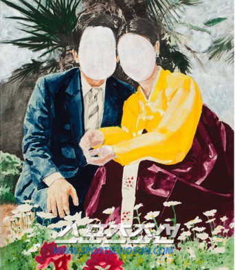 박유아 씨의 작품 속 '부부'는 전 남편 고승덕 후보와 찍은 과거 사진을 차용한 작품으로 관심을 모았다. 특히 부부의 얼굴을 하얀 색으로 칠해 다정해 보이는 '부부'의 거리감이나 낯선 사람이 만나 한 가정을 이루는 부부의 숙명을 표현했다.