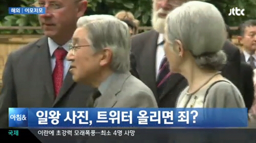 이 사진은 일왕과 왕비가 활짝 웃으며 손을 흔드는 사진으로, 3시간 만에 3500건이 리트윗되면서 화제가 됐다.