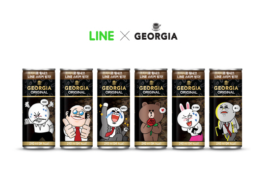 글로벌 메신저 라인과 세계 1위 캔커피브랜드인 조지아는 라인의 인기 캐릭터가 적용된 새로운 디자인의 조지아 캔커피 패키지를 선보이고, 유료 스티커를 무료로 다운로드 받을 수 있는 '조지아로 힘내고, LINE스티커 받자' 이벤트를 7월 31일까지 진행한다.