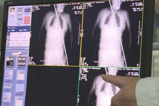 긴 쇠막대에 몸이 관통당한 여성이 기적적으로 생존했다.