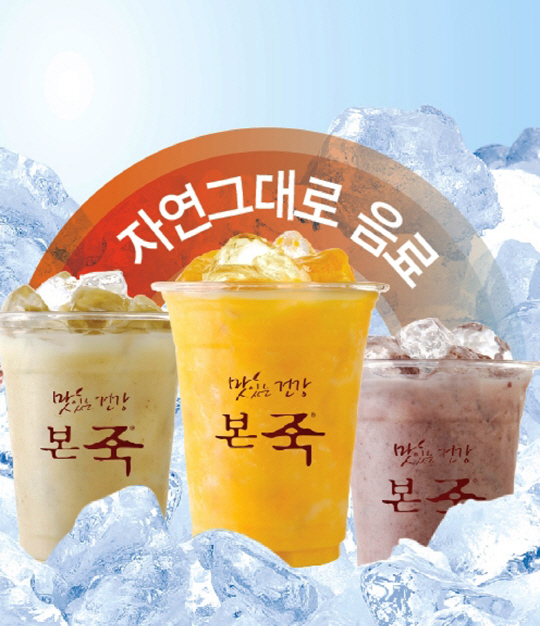 웰빙 죽 전문점 본죽은 단호박, 팥, 녹두를 갈아 넣은 '자연그대로' 음료 판매가 한창이다. 각 재료를 얼음과 함께 통째로 갈아 넣어 재료 본연의 맛을 느낄 수 있는 이 음료들은 건강한 먹거리를 추구하는 본죽의 콘셉트와 일치한다. 가맹점주 부문의 아이디어 공모전 대상을 수상한 작품으로 맛과 건강을 모두 잡았다. 특히 고소한 맛의 '자연그대로 녹두'는 단백질을 구성하는 로이신, 라이신, 발린 등의 필수아미노산이 풍부한 녹두가 듬뿍 들어가 성장기 어린이에게 좋으며 열량이 낮아 다이어트 중인 여성들에게도 좋은 여름 음료다. 기능성 건강음료 스무디킹은 지난 1일부터 더운 여름을 건강하게 나기 위한 신제품 베지 스무디 3종을 선보였다. 베지 스무디 3종은 '애플 키위 케일 드림', '베리 캐롯 드림', '캐롯 케일 드림'으로 구성돼 기호에 따라 야채와 과일을 선택할 수 있게 한 것이 특징이다. 베지 스무디의 주재료인 당근과 케일에는 식이섬유가 풍부해 기름진 식생활을 즐기는 현대인들이 하루 한 잔씩 챙겨 먹으면 간편하게 건강을 챙길 수 있다. '애플 키위 케일 드림'에는 비타민 C, E. K이 함유된 케일과 비타민 C의 보고인 키위가 들어 있어 여름철 피부 미용과 피로 회복에 효과적이다.