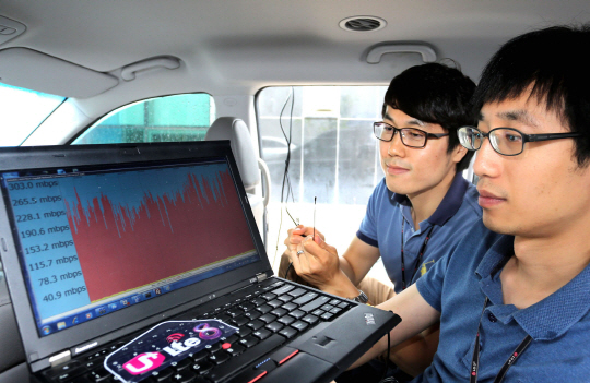 LG유플러스(부회장 이상철)가 세계 최초로 상용망에서 LTE보다 4배 빠른 '3밴드(Band) CA(Carrier Aggregation)' 시연에 성공했다.