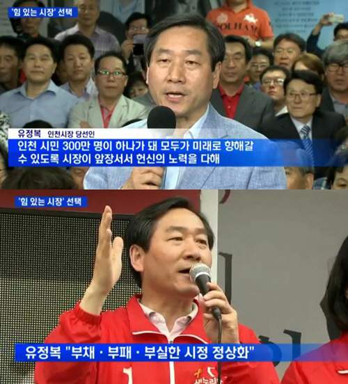 인천시장 당선자 유정복, 당선 축하합니다", "