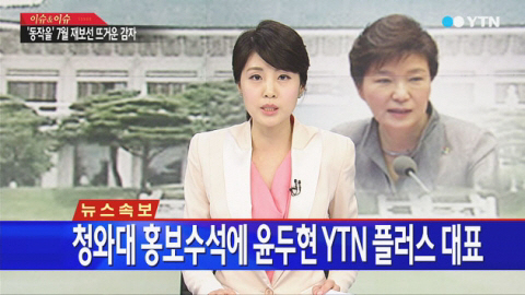 민 대변인은 이날 "윤 신임 수석은 YTN 정치부장과 보도국장 등 오랜 언론인 생활을 통해 균형감 있는 사고와 날카로운 분석 능력을 발휘해온 분"이라며 "정부가 추진하는 국가개조 작업에 대한 정부 정책을 설명하고 국민의 이해와 협조를 구하는 소통의 적임자로 판단해 임명했다"고 밝혔다.