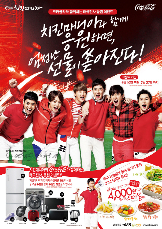 치킨매니아(대표 이길영)가 2014년 브라질에서 열리는 축구축제를 앞두고 태극전사들의 선전을 기원하는 응모권 추첨 이벤트를 7월 20일까지 진행한다.