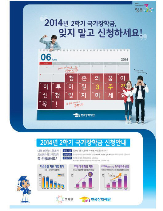 희망자는 10일 오전 9시부터 30일 오후 6시까지 한국장학재단 홈페이지(http://www.kosaf.go.kr)를 통해 접수가 가능하다. 신청은 접수 기간 동안 24시간 가능하고 증빙 서류는 7월 3일 오후 6시까지 제출해야 한다.