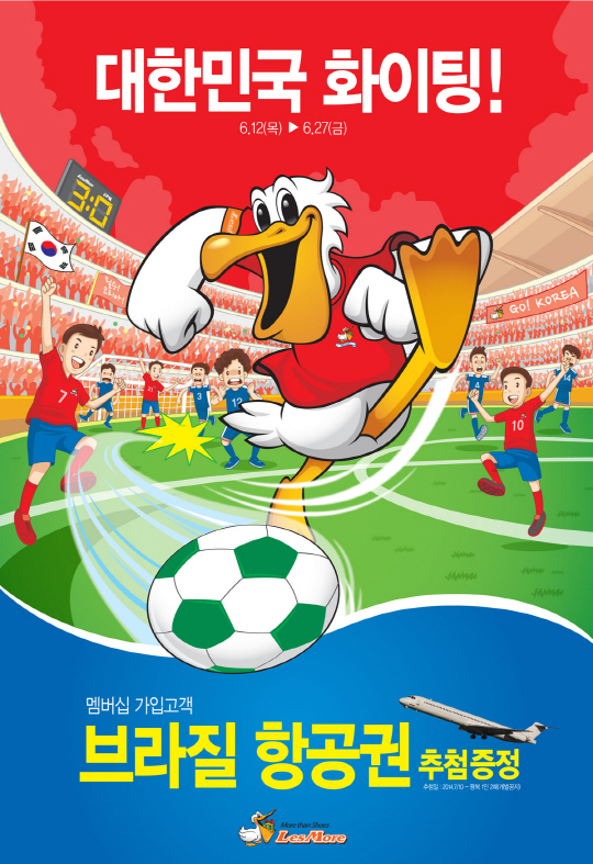 한편, 레스모아는 월드컵 경기 응원 코디에 어울리는 레드 컬러 슈즈, 야외 응원시 시원하게 연출할 수 있는 코르크 샌들, 비가 왔을 때에도 문제없는 아쿠아 슈즈 등 다양한 아이템을 판매한다. 특히 멤버십에 가입하면 현장에서 즉시 사용 가능한 1만원 쿠폰을 제공한다.