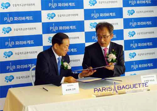 우유자조금관리위원회(위원장 손정렬)는 ㈜파리크라상의 대표 브랜드인 파리바게뜨와 11일(수) 파리바게뜨 카페강남역점에서 '국산우유 소비 활성화 및 상생을 위한 행복한 우유 협약식'을 체결하였다.