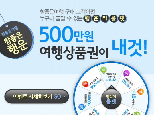 국내대표 직판여행사 참좋은여행이 지난 1일부터 여행상품을 구매한 고객을 대상으로 최대 500만원 여행상품권을 제공하는 이벤트를 진행중이다.