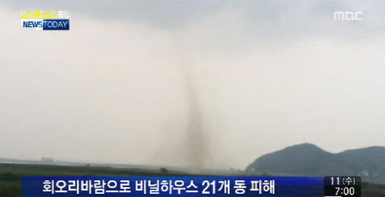 한 화훼단지 인근 비닐하우스 21개 동이 회오리바람에 무너졌으며, 비닐하우스 잔해들이 전신주를 휘감아 29가구가 최대 4시간까지 정전되는 불편도 겪었다.