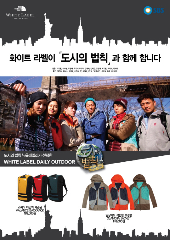 글로벌 아웃도어 브랜드 노스페이스(The North Face)의 데일리·아웃도어·스타일 컬렉션 '노스페이스 화이트라벨'이 SBS 예능프로그램 '도시의 법칙'을 제작 지원했다.