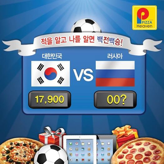 46cm 대형 피자로 인기를 얻고 있는 피자헤븐이 월드컵을 맞아 페이스북을 통해 '적을 알고 나를 알면 백전백승' 이벤트를 진행한다.