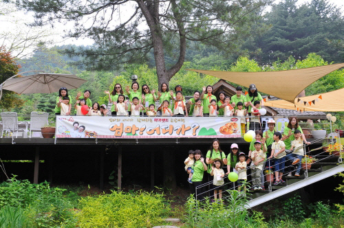 경기도 양평 서후리 숲에서 진행된 숲 산책 코너는 엄마와 아이가 육체적으로 가까워질 수 있도록 설계됐다. 숲 곳곳에 엄마와 아이가 수행할 교감 미션을 설치하고 미션을 수행할 때마다 스탬프를 찍어 아이들이 성취감을 느낄 수 있도록 했다. 교감 미션에는 엄마랑 풍선 터뜨리기, 엄마 사랑해로 100데시벨 넘기기, 볼로 엄마 알아맞히기, 엄마랑 산책길 완주, 엄마랑 꽃이랑 셀카 찍기, 엄마랑 마가렛트 입으로 전달하기 등으로 구성됐다. 마지막 코스는 경기도 양평 부창농원에서 엄마와 딸기 따기 체험을 하는 시간을 가졌다. 무공해 딸기를 직접 손으로 따 보고 마음껏 먹으며 엄마와 딸기를 포장하는 시간이었다. 이어 딸기밭에서 친구들과 사진을 찍는 시간이 주어졌다.