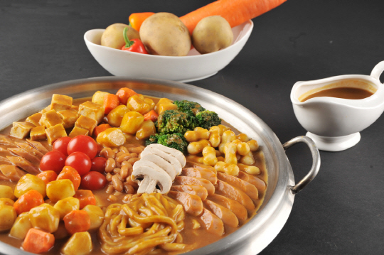 ◆자체 개발한 카레육수를 부어 끓여먹고 비벼먹는 '놀부 카레부대찌개'