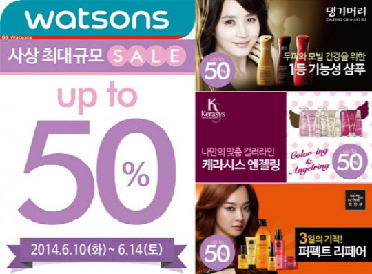 왓슨스는 "오는 14일까지 여름 인기브랜드 화장품을 최대 50% 할인해 판매한다"고 밝혔다.