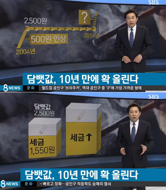 한편, 담뱃값 인상 소식에 누리꾼들은 "담뱃값 인상, 약 800원 오른다고 안태울까?", "담뱃값 인상, 흡연자들 선택은?", "담뱃값 인상, 흡연인구 영향 미칠까?", "담뱃값 인상, 좀 더 많이 올리지" 등의 반응을 보이고 있다. <스포츠조선닷컴>