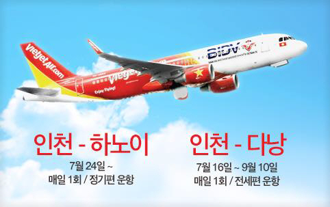 7월16일부터 9월10일까지 매일 1회 전세기편으로 운항되는 비엣젯항공 서울(인천)-다낭 구간은 인천에서 11시05분 출발하여 다낭에 14시30분 도착하며, 귀국편은 다낭에서 01시50분 출발하여 서울에 08시에 도착한다. 또 7월24일부터 정기편으로 매일 1회 운항되는 서울(인천)?하노이 구간은 인천에서 11시05분 출발해 하노이에 14시10분 도착하며, 귀국편은 하노이에서 01시45분 출발하여 인천에 07시55분에 도착하게 된다.