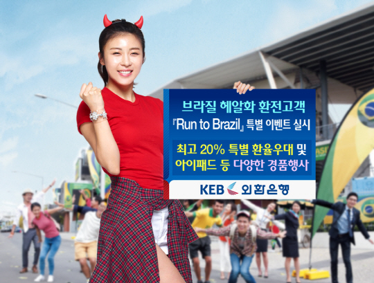 이번 외환은행의『Run to Brazil 』브라질 헤알화 환전고객 특별이벤트는 브라질 여행 및 출장을 위해 브라질을 방문하는 환전 고객을 위해 다음 달 18일까지 진행하며 6월 2일부터 8월 29일까지 실시 중인 외환은행 『Cool Summer 환전페스티벌』과 별도로 진행된다.