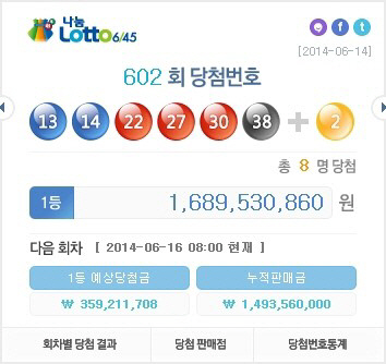 로또 602회 당첨번호, '13, 14, 22, 27, 30, 38+2'…1등 16억씩 '대박'