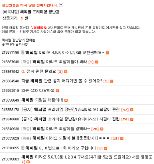 특히 "해피밀 장난감 교환글 또한 전화번호 노출로 교환을 빙자한 판매로 이루어 질 수 있다고 판단, 당분간 무통보 삭제처리 하겠다"고 덧붙였다.