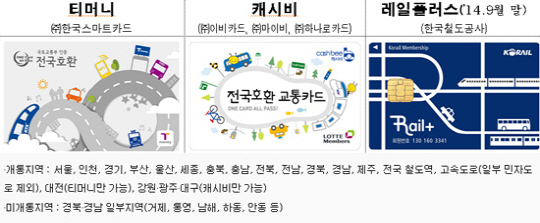 기존 교통카드는 대중교통 위주로 사용했지만, 전국호환 교통카드는 기차, 고속버스, 고속도로 통행요금 등 다양한 교통인프라 이용까지도 결제가 가능한 것으로 알려졌다.