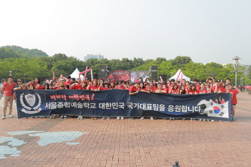 서울종합예술학교는 3월 5일 서울시청 앞 광장에서 열린 2014 국가대표팀 선전기원 D-100 대한민국 응원출정식을 시작으로 월드컵 응원 관련 행사에 꾸준히 참여해왔다. 5월 28일 상암월드컵경기장에서 열린 브라질 월드컵 대표팀 출정식 현장에서 운동장 한 가운데서 응원 퍼포먼스를 펼치기도 했다.