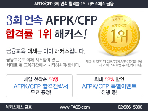 해커스패스 금융은 제 53회 AFPK시험에서 전체 합격률 1위를 3회 연속 달성했다. 제 25회 CFP에서는 학생 수석합격자를 배출하기도 했다. 지난 10일에 출간한 AFPK 핵심문제집과 실전모의고사는 출간 직후 베스트셀러를 달성했다.