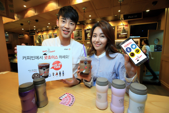 이벤트에 참여 후 특별 제작된 컵과 슬리브를 돌려 정확한 이미지를 맞춘 뒤 인증샷을 찍고 '#굿초이스'라는 헤시테그와 함께 자신의 페이스북이나 트위터에 올리면 이벤트 기간 종료 후 추첨을 통해 50명에게는 '커피빈 2만원 이용권', 15명에게는 '커피빈 텀블러'를 경품으로 추가 제공한다.