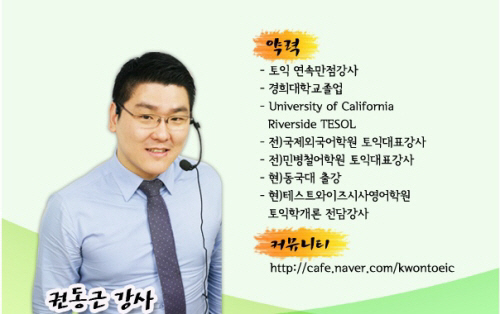 권 강사는 "파트1 사진묘사문제에서 파트7 실용문독해에 이르기까지 토익에 출제되는 문제들 중 대부분은 문제 속에 단서(clue)를 찾아 푸는 문제"라며 "이러한 문제 유형들을 하나씩 정복해 간다는 생각으로 공부해야 난이도에 상관없이 고득점을 받을 수 있다"고 강조했다.