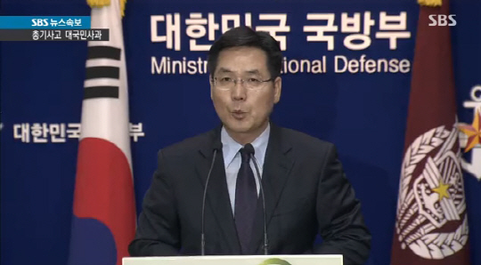 김민석 국방부 대변인은 22일 "21일 오후 8시15분께 동부전선 GOP 소초 총기사고로 인해 5명이 사망하고 7명이 부상을 당하는 안타까운 일이 발생했다"며 대국민 사과문을 발표했다.