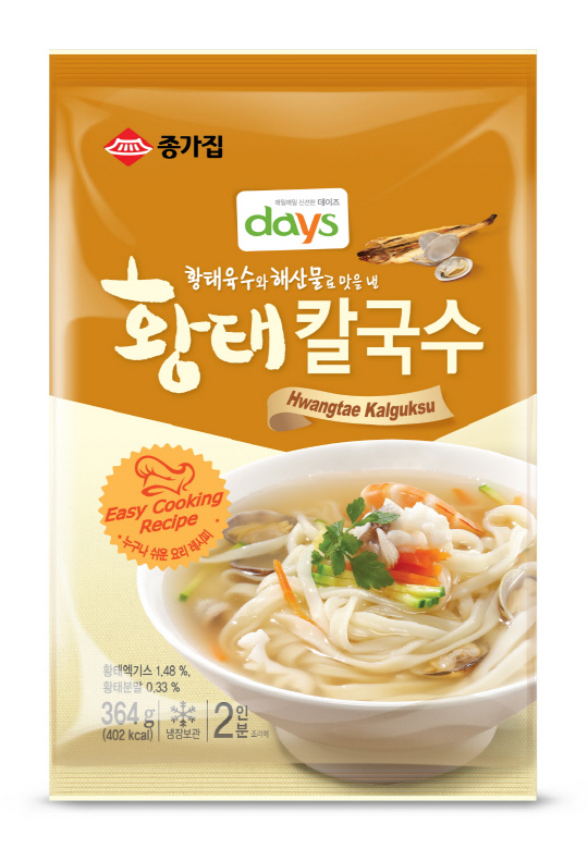 '데이즈 황태칼국수'는 8번 반죽해 쫄깃함을 극대화한 칼국수 생면과 잘 말린 황태와 해산물을 깊이 우려내 시원한 맛을 내는 육수의 조화가 일품인 제품이다. 누구나 쉽고 편하게 조리할 수 있도록 생면과 육수가 함께 들어 있다.