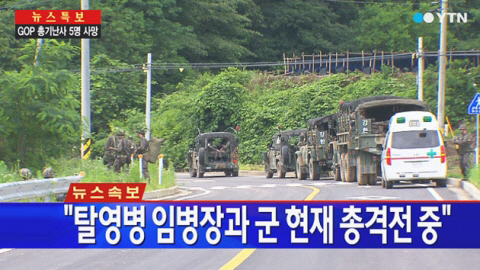 21일 오후 2시 13분쯤 강원도 고성 22사단 GOP(휴전선을 지키는 일반전초)에서 총기 난사 사건을 일으킨 뒤 탈영한 임 병장(23)이 22일 오후 2시 현재 강원도 고성 제진검문소 인근 명파초등학교 주변에서 군과 총격전을 벌인 뒤 대치중에 있다고 국방부가 밝혔다.