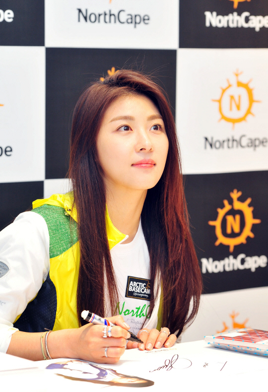 지난 20일, 노스케이프 전속모델 하지원이 패션그룹 형지의 부산 괴정 사옥 오픈 기념으로 팬사인회를 진행했다.
